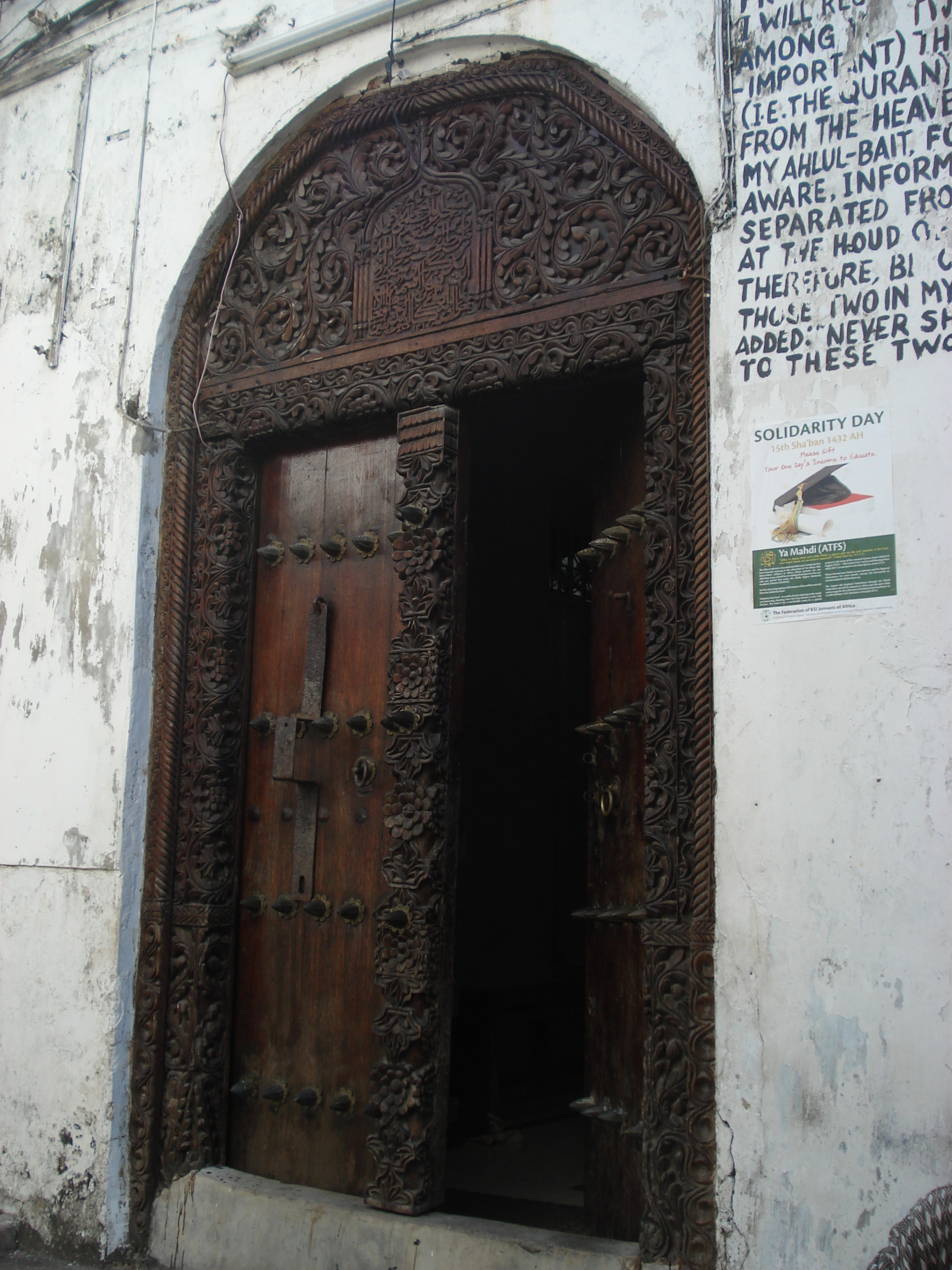 Lasciate il simbolo di Zanzibar dopo esservi goduti il panorama dalla sua terrazza e una volta ritornati a passeggiare per le vie del centro, prestate attenzione ai bei portoni in legno intarsiato degli antichi palazzi. Impossibile non notare che tra case più o meno fatiscenti e all’ingresso di strutture in rovina, restino ancora perfettamente in piedi massicci portali di legno scurissimo decorati in stile indiano o omanita. Ho posato più volte lo sguardo su questi capolavori di fine artigianato e notato come spesso le incisioni richiamassero elementi della natura o anche l’slam con bassorilievi che riportavano alcuni passi del corano.
